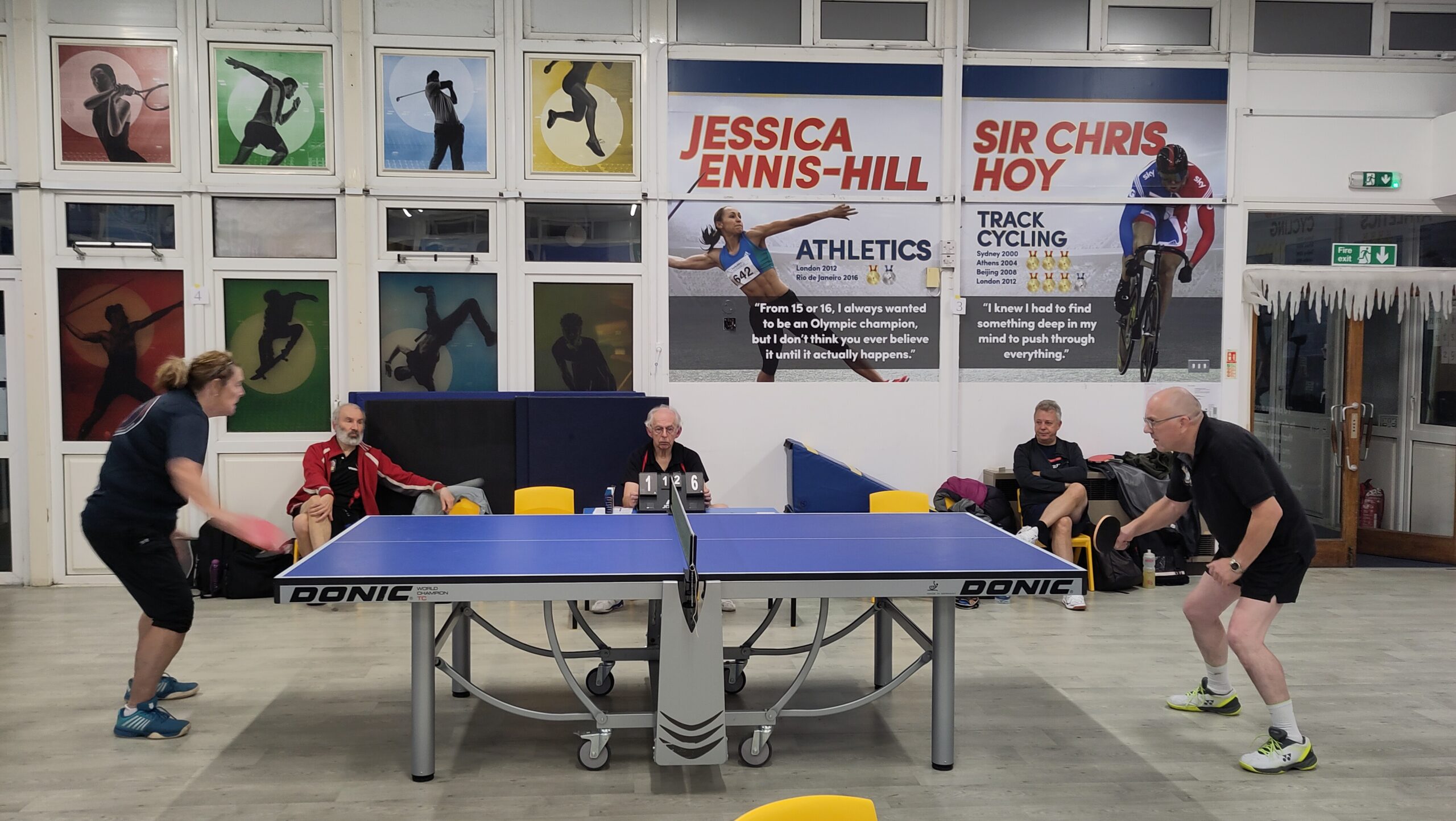 Stanford’s win could have matched those other results if it wasn’t for Tony Millward who recorded the perfect hat trick for Runnymede, but unfortunately his teammates Heather Stiles and Steve McQuillan were easily outgunned by the home team of Mike Trendell, Chris Crooks and Peter Moxham. Nine matches and not one went beyond three sets!