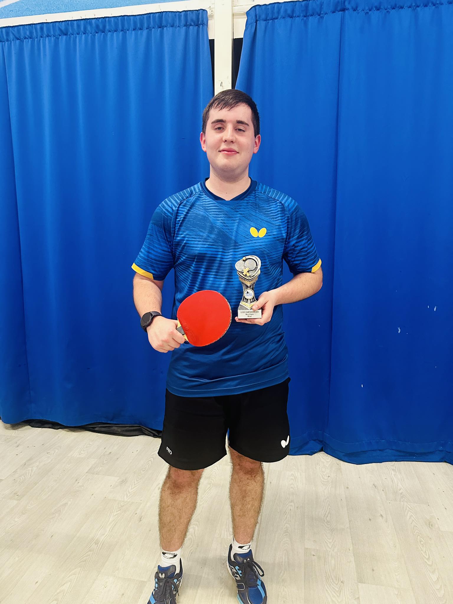 Taylor stepped up for his third final of the night, this time partnered by Daniel Bronziet (Rawreth), in the final of the Men’s Doubles against Mulley and Wall. It turned out to be a successful partnership as well as, after exchanging the first two sets 12/10, they edged the next two 11/7 11/8.