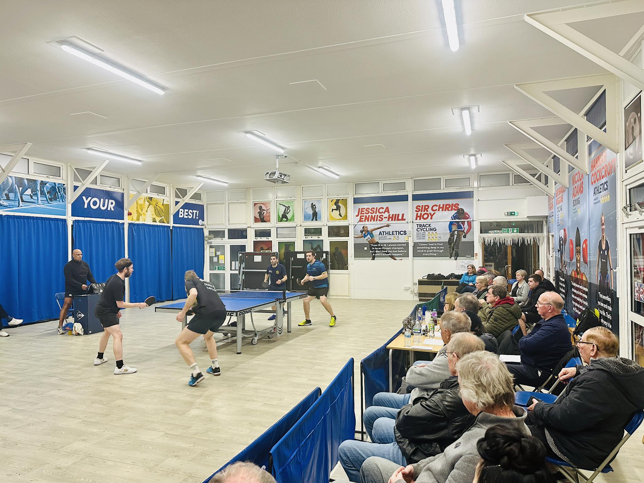 All in all the evening produced some thrilling matches with great hitting, stubborn defence, amazing rallies and even a fair share of outrageous nets. Thoroughly enjoyed by the crowd even though the finish was past some of their bedtimes!