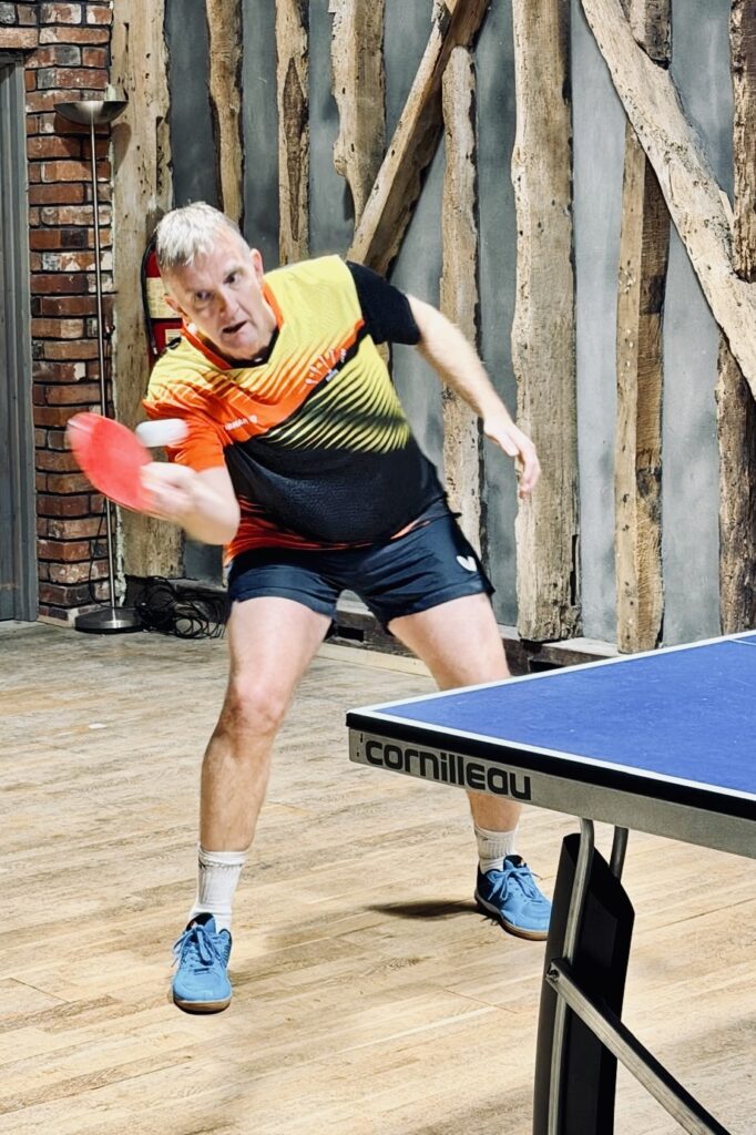 It was a busy week for Lowman as he first led his Cold Norton C trio to a shock 6-4 win over Mapledene A with a hat-trick of wins including the now infamous 11-9 fifth set victory over the reigning Singles Champion Squirrell.  You have to venture back to February 2024 for the last time Squirrell lost a singles match in the Burnham League – he has been that dominant!  So all credit to the man of the moment and constant honeymooner Lowman.  Squirrell won his other 2 matches in straight sets and partnered up with Steve Muth for the doubles point.  For Cold Norton Dave Richardson opened his C team account with 2 good wins against Muth and Peter Barrett.  Later on in the week Lowman was out again – he gets out a lot for a recently married man – this time for the Cold Norton B team to whom he is now locked in.  The opening match saw another potential Singles Final showdown as Lowman took on the very dangerous Dan Young.  Another 5 setter where the momentum bounced around each leg until Lowman won out 11-6 in the decider.  At this point Lowman may have relaxed a bit too much thinking the hard work was done – he did beat Tony Bonnici in 3 legs, but in his final encounter came up against the hard-hitting leftie Dan Piglet (handedness not political leaning!).  Piglet took the opening set, and Lowman squared up at 1-1 but then Piglet blew him way with a huff and a puff for a quick fire finish.  As we remember from Jurassic Park docuseries – ‘nature finds a way’.  Young took impressive wins over Ian Wall and Eric Green, and Piglet completed his evening with a notable win over Green and a very close 5 set loss to Wall.  But that was all the points for Woodham as bookies favourites Cold Norton took the remaining spoils including the very important doubles Brucie bonus that gave them the win.  Mapledene B have surged up the table following their 10-0 whitewash victory over 2-man Stow Maries A.  It was all pretty straightforward for the Mapledeners with just one match going to a deciding set where Paul Brown, of Basildon fame, beat Gary Brignall to complete his unbeaten evening.  Mapledene duo Glenn Johnson and Keith Willett only dropped 1 set all evening – with these two playing regularly the Mapledene B side may be eyeing up a podium finish.