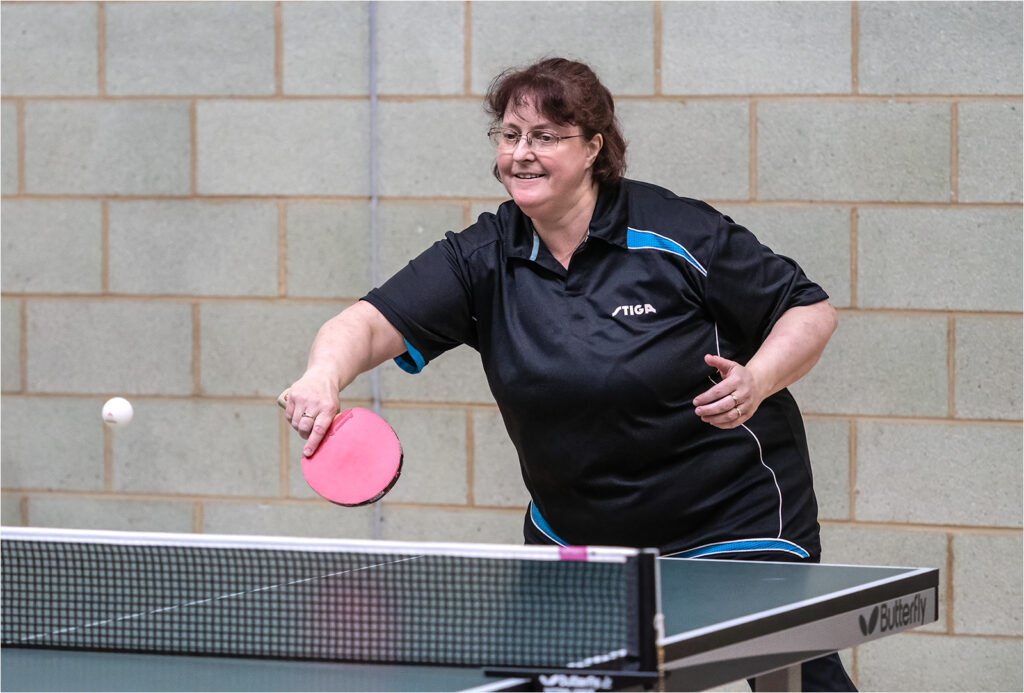 Windsor Harriers finished third in the Group, thanks to a 5-3 success against Walton B, Isabel Barton unbeaten. Walton fielded three left-handers in this match, and it was good to see Paul Newbould back in table tennis action after eighteen months away from the game through illness and injury.