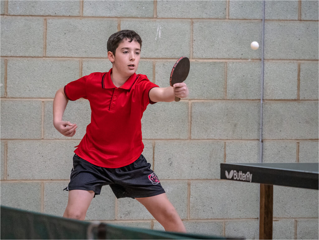 We started off with Jamie Elliott doing just that – beating Harrison Hill in just 3 games. That was a shock result and spectators wondered whether Jamie might be having a breakout tournament. Then, Nikita Tkachuk managed to beat top seed Toby McLewin – it seemed expected results were going out the window and no-one could predict the eventual ranking. Jamie continued his great start by beating Chelmsford star player, Josh Bickles. Harrison Hill made a quick comeback to beat Aidan Lees. Felix could offer no defence against Toby who looked to have upped his game. Josh frustrated Aidan in just 3 sets with quick blocks to dispatch Aidan’s powerful spins. Toby continued his recovery to beat Harrison in 3 games. Omar Wasi stopped Jamie in his tracks over 5 sets. Josh took Toby to five sets, but Toby kept his cool to eventually win. Harrison managed to win against Nikita in 5 games. Aidan got the better of Jamie allowing him a miserly 14 points in their 3 games. Josh needed all five sets to win against Nikita. The match was so close that Josh scored only three more points than Nikita’s total of 50. Toby was next to take advantage of the waning of Jamie, losing only 16 points in his three-set victory. A couple of matches later, Nikita only allowed Jamie 15 points. Aidan’s form continued to escalate as he achieved a win against Toby, even winning his last two games 11-3, 11-3. Felix played well against Jamie, but Jamie just took the match in a close five-setter (12-14, 11-7, 4-11, 13-11, 11-9). Aidan defeated the rampant Nikita in just three easily won games. In the last match of the group, Harrison and Josh battled it out for second place. It was a close game and Harrison just won by winning the last two games 11-8, 11-8.