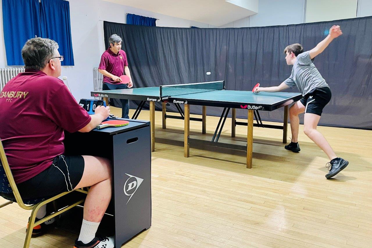 Division three doesn’t often make the headlines in the Chelmsford & District Table Tennis League but the most eye-catching performance went to Maldon A this week. They hammered leaders Galleywood B 9-1 to take over at the top of the table. John Holland beat Dawn Baldry in the opening game but thereafter it was Maldon calling the shots as Lloyd Bennett – Smith and Hamish Innes remained undefeated. Hamish Innes excelled, securing three wins in closely fought games. Hamish beat Mark Glenister (11-9, 11-9, 11-9), John Holland (1-11, 11-9, 11-9, 11-9) and Bryn Thomas (11-3, 12-10, 11-6). Lloyd Bennett-Smith sealed a superb Maldon victory by beating John Holland (9-11, 11-6, 11-8, 11-8) in the last game of the evening. Maldon A also beat third placed Chelmsford F 8-2. Dawn Baldry scored a hat-trick this time, beating Nikita Tkachuk (7-11, 11-5, 11-8, 11-6), Alex Tkachuk (11-13, 11-7, 11-6, 11-7) and Luke Richardson (11-3, 15-17, 11-2, 11-5). Alex Tkachuk excelled for the losers, defeating Hamish Innes (12-10, 7-11, 11-5, 6-11, 11-9). Chelmsford F in turn drew 5-5 against Danbury K. New comer Sam Phillips was unbeaten for Danbury and he was well supported by Nicky Reece-Ford who won twice. Without Sam Phillips Danbury K did not fare so well and they lost 8-2 to Hatfield Peverel B – Peverel’s first win of the Season. Paul Mulley led the way with three wins whilst Michael Lucey and Phil Shippen both won twice. Phil Shippen fought back from 2-0 down to beat Mo Hardy 5-11, 9-11, 11-9, 11-2, 11-8. It was honours even between Chelmsford E and Writtle D as Robert Garson won his three singles for Writtle D. OCA D did well to beat the higher placed Danbury H 7-3. Richard Baxter and Richard Upson both won their three singles.