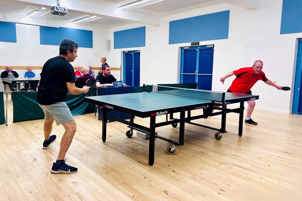 Walton C hit back immediately before the interval when Meikle (+2) made full use of his handicap start, defeating Vincent (-8) 11-0, 11-0, 11-2. Vincent resolutely refused to sacrifice his natural aggressive style, which produced rat-a-tat table tennis, full of sharp rallies. But Meikle’s excellent left-hand looping winners ultimately proved the key to a straightforward victory.